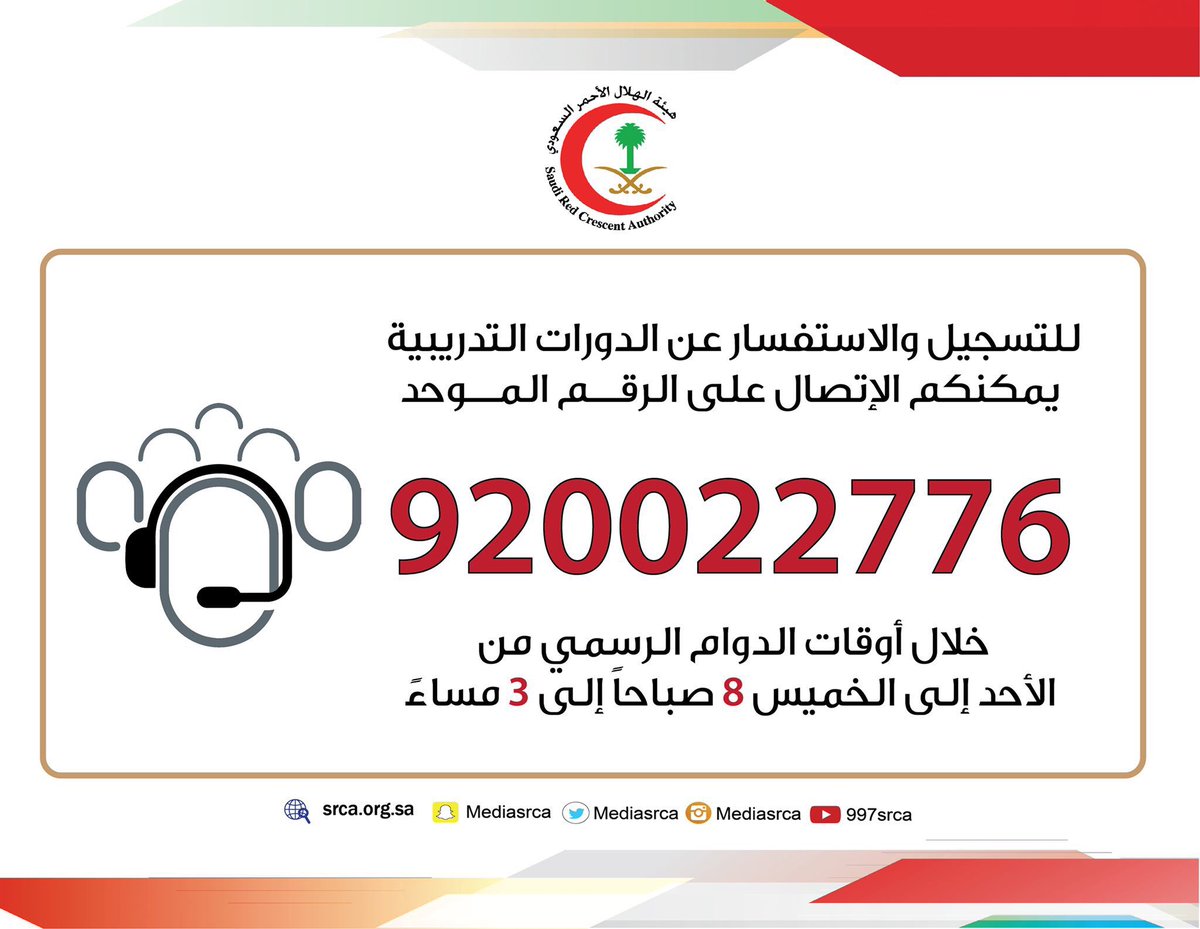 هيئة الهلال الأحمر السعودي على تويتر أهلا وسهلا لطلب الدورات التدريبية كمجموعة يرجى التواصل مع رقم الخدمة المجتمعية 19971 أو من خلال ارسال طلب للبريد الكتروني Coursereg Srca Org Sa نسعد بخدمتكم وتواصلكم Https T Co 5ufaaiwcqs