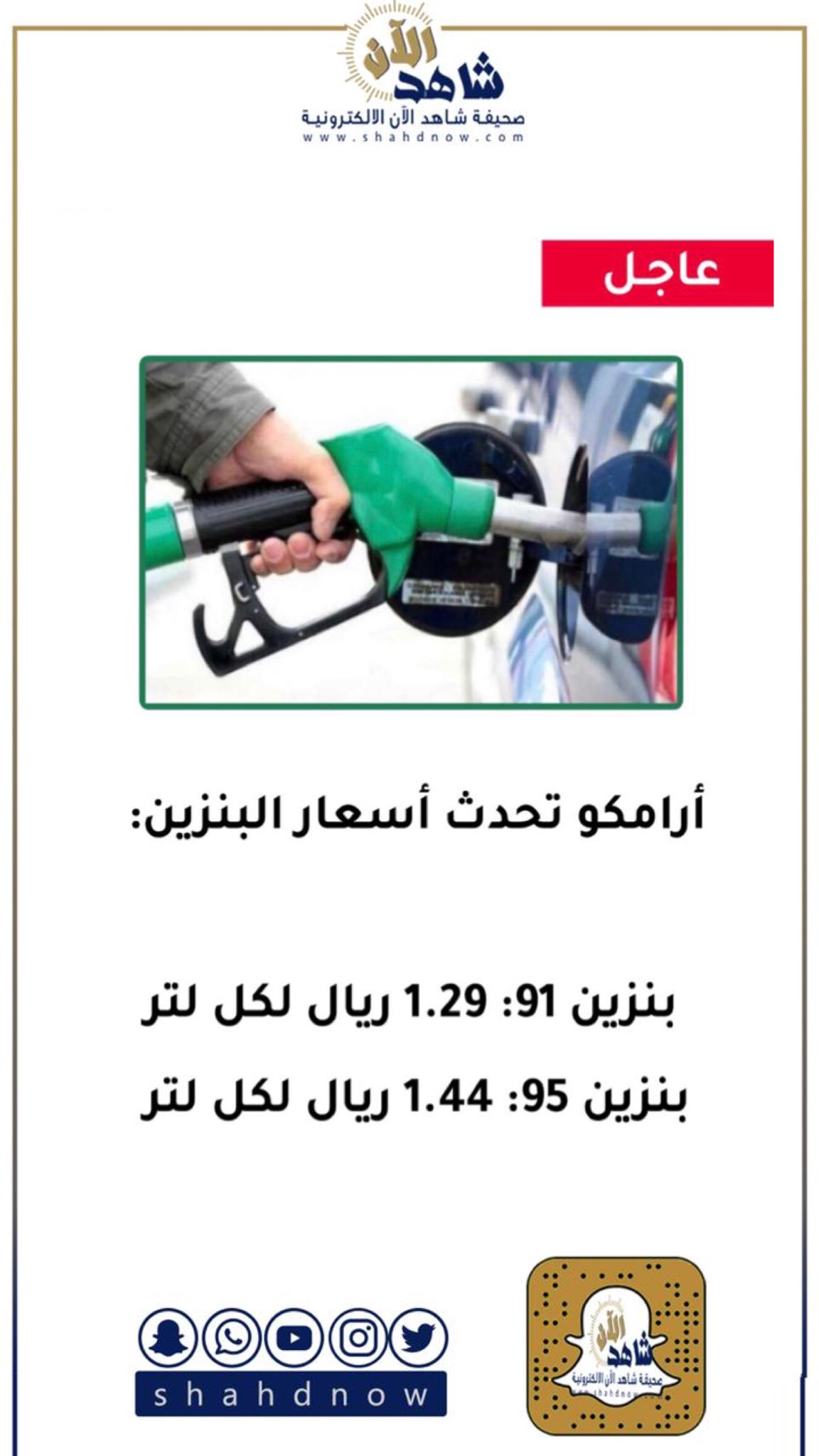 سـنــا ب بــلـلــحـمــر On Twitter شركة أرامكو تعلن المراجعة الشهرية لأسعار البنزين للفترة من 10 اغسطس الى 10 سبتمبر بنزين 91 السعر 1 43 ريال لكل لتر بنزين 95 السعر