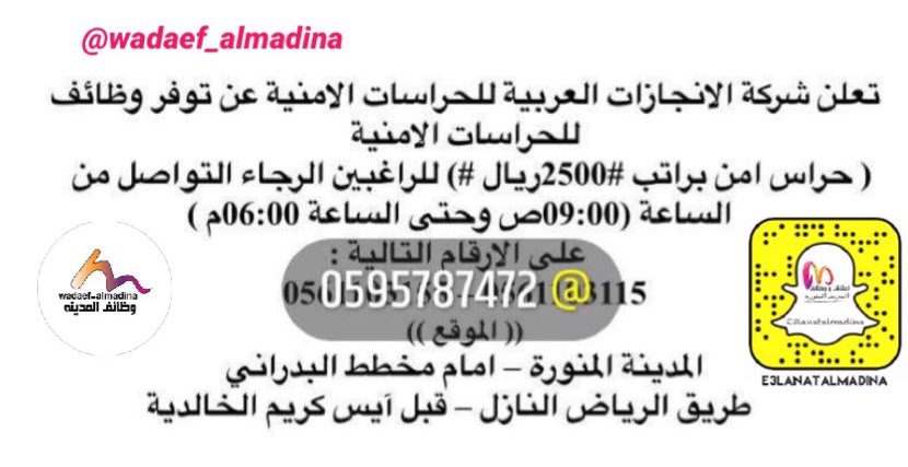 وظائف وإعلانات المدينه On Twitter وظائف وظائف المدينة المدينة المنورة مساء الخير وظائف نسائيه وظائف المدينه صباح الخير ريتويت لايك سناب سناب شات Https T Co Sgkqjce6m2