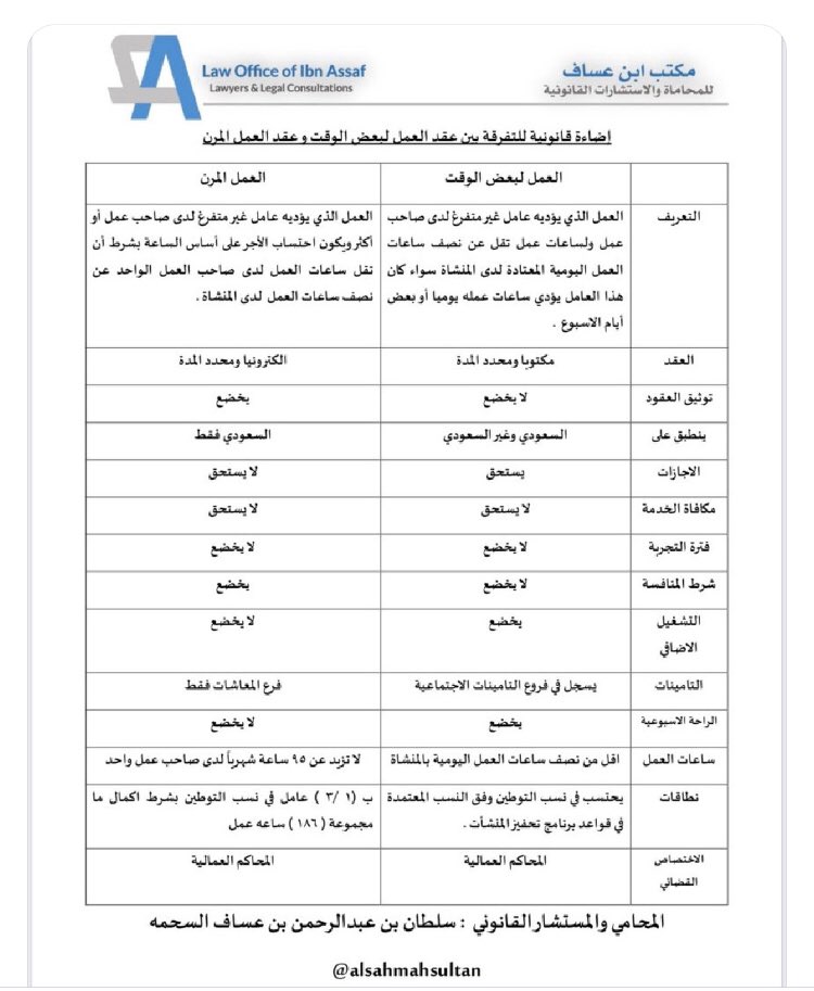 المحامي الإلكتروني On Twitter وزارة الموارد البشرية تصدر قرارا لتنظيم العمل المرن الذي يتيح للسعوديين فرصة العمل لساعات محددة في القطاع الخاص ويكون الأجر فيها بالساعة ويستفيد منه الباحثين عن العمل والطلاب