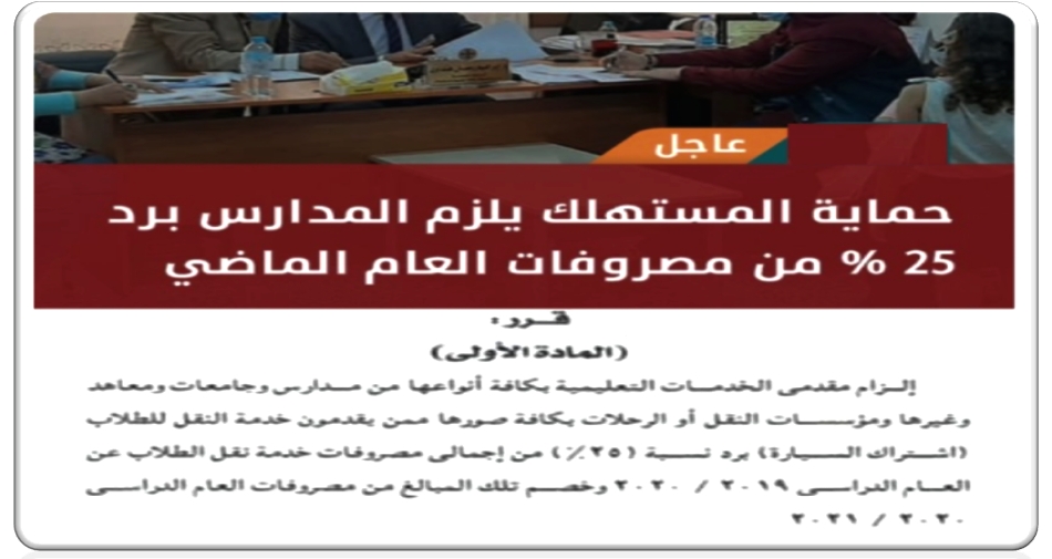 قرار جهاز حماية المستهلك يلزم المدارس برد 25 من مصروفات المدارس بخصمها من مصروفات العام الدراسى 2020 2021